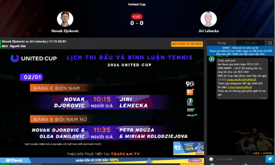 Xem THAPCAMTV Trực Tiếp Tennis Online